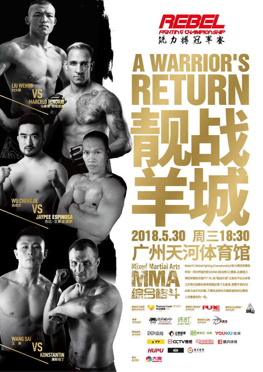 锐力搏冠军赛“靓战羊城”广州赛共包括10场高水平的MMA比赛,来自中国和全球各地的20位顶尖MMA拳手将在这一平台上,在开放式规则下,为观众展示各种不同武术流派之间的对抗。其中尤为引人关注的是以下三场焦点之战:刘文擘对决马塞洛·特洛里奥,王赛对战康斯坦丁,吴成杰迎战杰比·艾斯皮诺萨。
