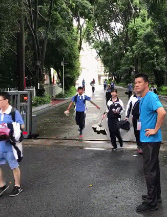 【南头中学】一位同学独自潇洒的走出来。众多家长等候在门口,你们也辛苦啦!