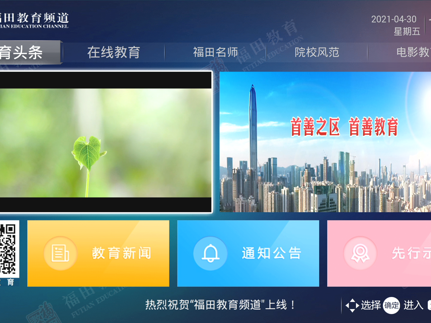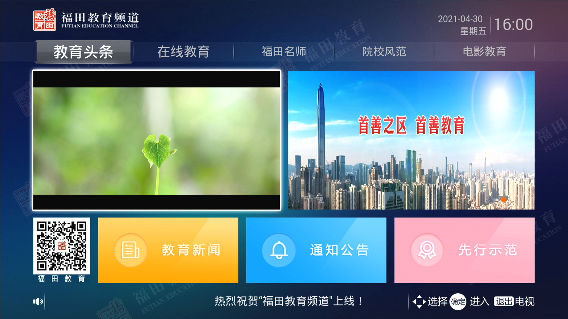 1.快捷路径:天威电视主页—福田教育频道