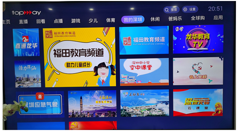 眼下的在线教学,主要通过手机、平板和电脑终端来实现,对学生视力造成损害在所难免,而“福田教育频道”是福田区教育局与天威视讯共同打造的电视大屏幕教育共享平台,频道负责人、福田区教科院小学语文教研员涂欣介绍:“当前居家学习和在线教学阶段,福田区教科院率先在福田教育频道重磅推出了在线教学指导意见和手册,还邀请优秀专家老师录制在线教学微指南小视频,通过快小短精的介绍和指引,让老师很快学习到了在线教学的经验和方法。我们邀请福田春晖家长学校的讲师同步开办了居家学习心理在线微讲堂,给孩子和家长及时带来居家学习的心理疏导。我们还引入了很多优质资源,比如说《唐诗三百首》的动漫、《跟着书本去旅行》等等。最近有个好消息,福田名师原创的779节涵盖中小学各学段各学科的教学资源微课视频全部在福田教育频道上播,跟居家学习的教学进度相匹配,给孩子们带来课前预学、课后巩固的良好补充。”