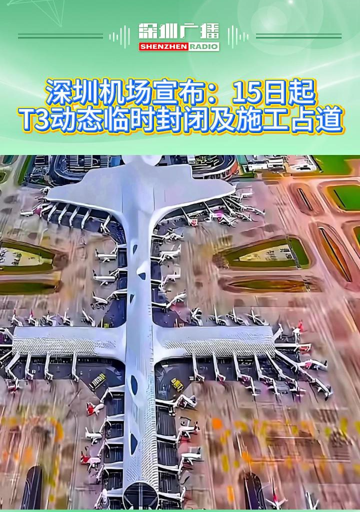 深圳机场宣布:15日起T3动态临时封闭及施工占道...