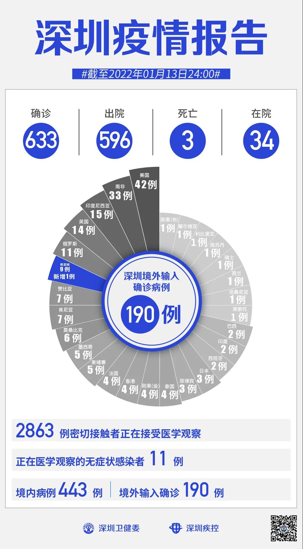 1月13日0-24时,深圳新增1例境外输入确诊病例。